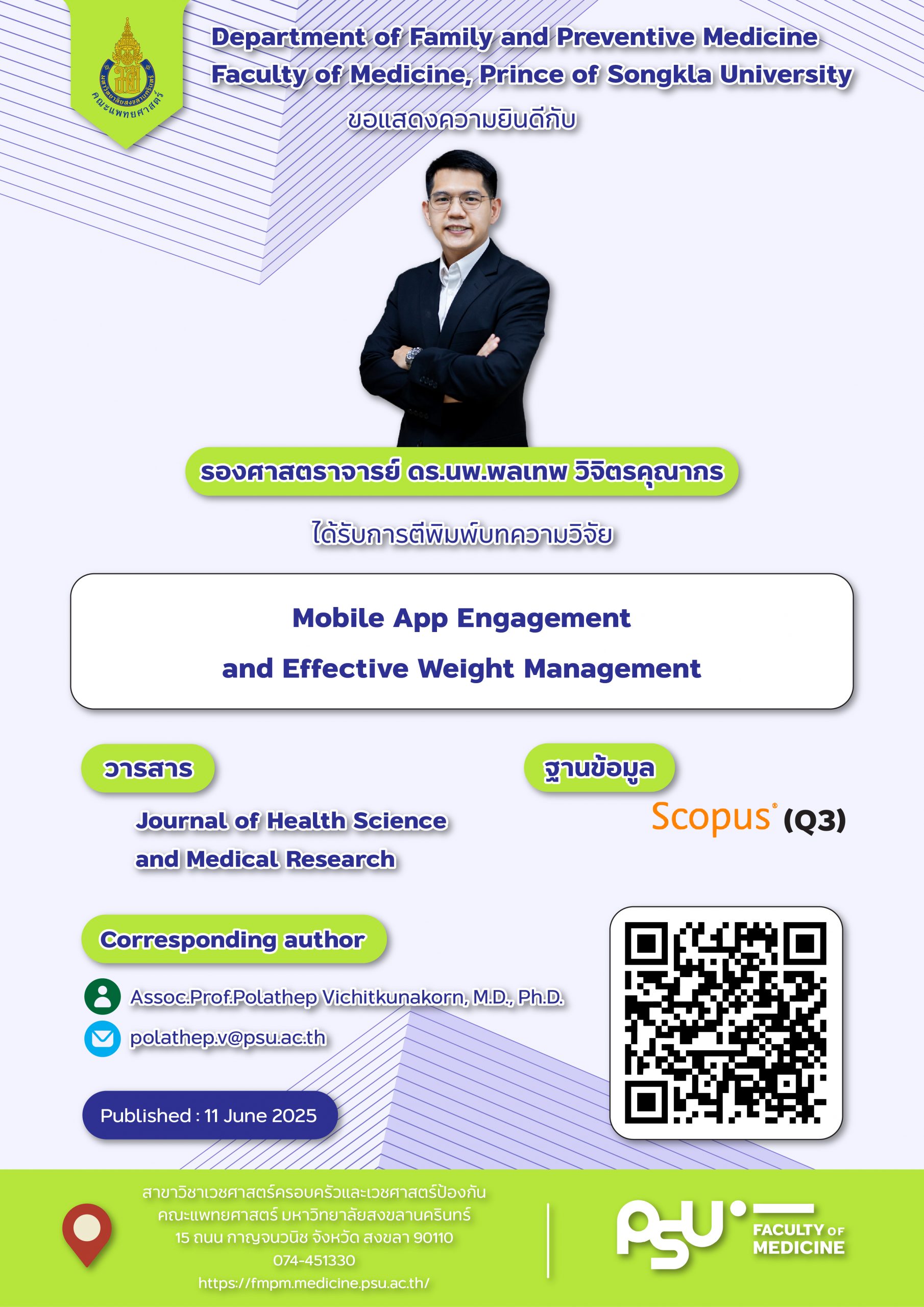 สาขาวิชาเวชศาสตร์ครอบครัวและเวชศาสตร์ป้องกัน ขอแสดงความยินดีมา ณ โอกาสนี้ด้วย