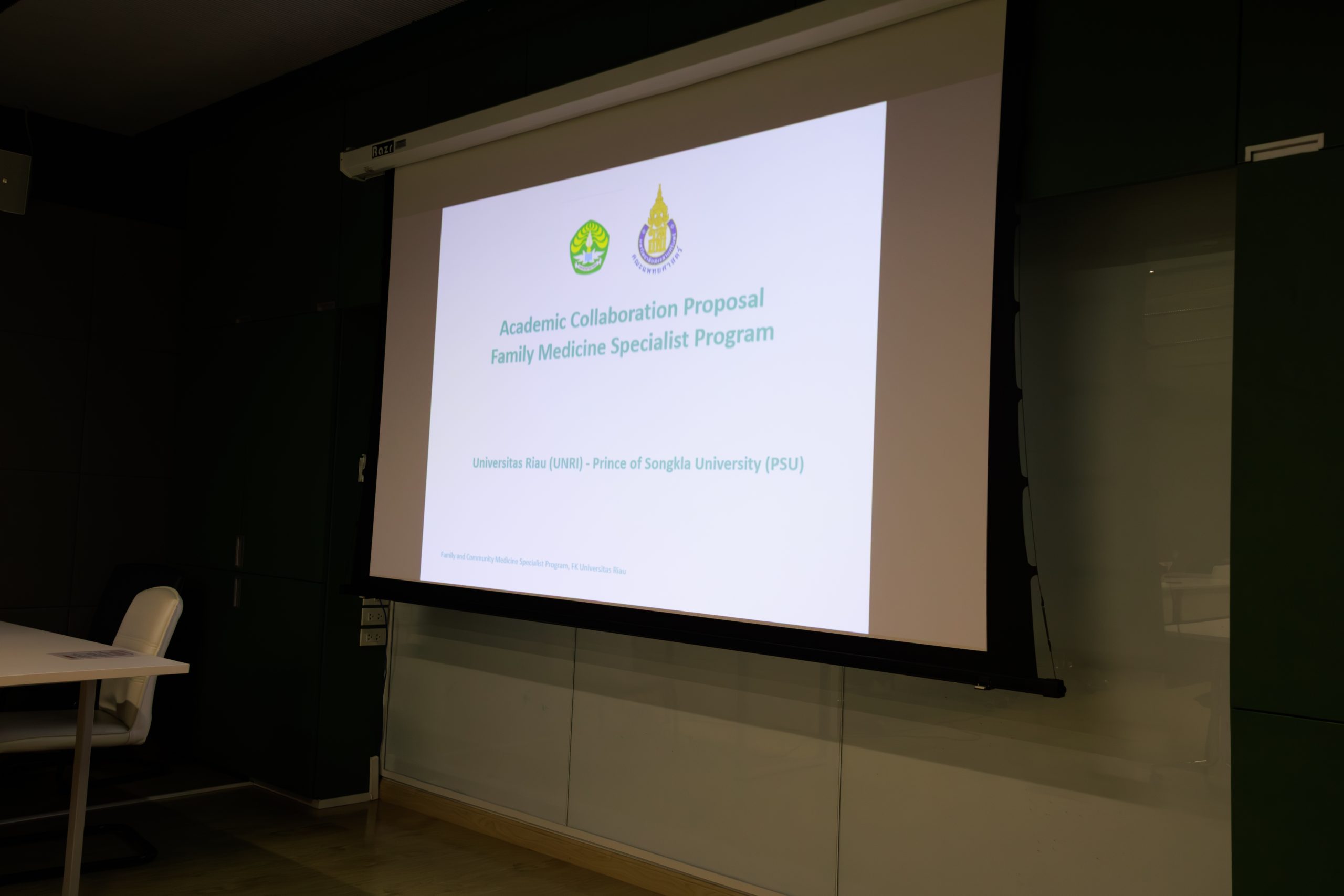 สาขาวิชาเวชศาสตร์ครอบครัวและเวชศาสตร์ป้องกัน ยินดีต้อนรับคณะผู้เยี่ยมชมจากคณะแพทยศาสตร์ Universitas Riau ประเทศอินโดนีเซีย เพื่อเข้าเยี่ยมชมทางวิชาการ (Academic Visit) ที่สาขาวิชาเวชศาสตร์ครอบครัวและเวชศาสตร์ป้องกัน มหาวิทยาลัยสงขลานครินทร์ เพื่อเป็นการสานต่อความร่วมมือ (follow-up MoU) ระหว่างคณะแพทยศาสตร์ Universitas Riau กับ มหาวิทยาลัยสงขลานครินทร์ ในด้านเวชศาสตร์ครอบครัว