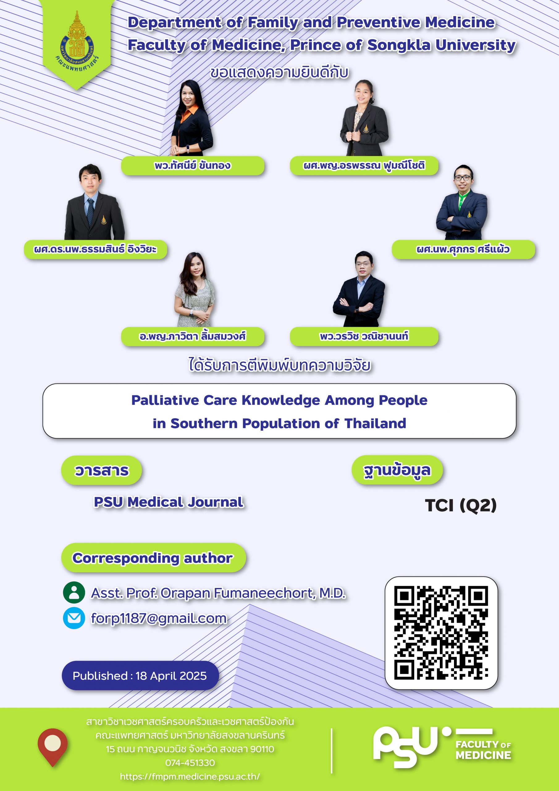 เรื่อง Palliative Care Knowledge Among People in Southern Population of Thailand